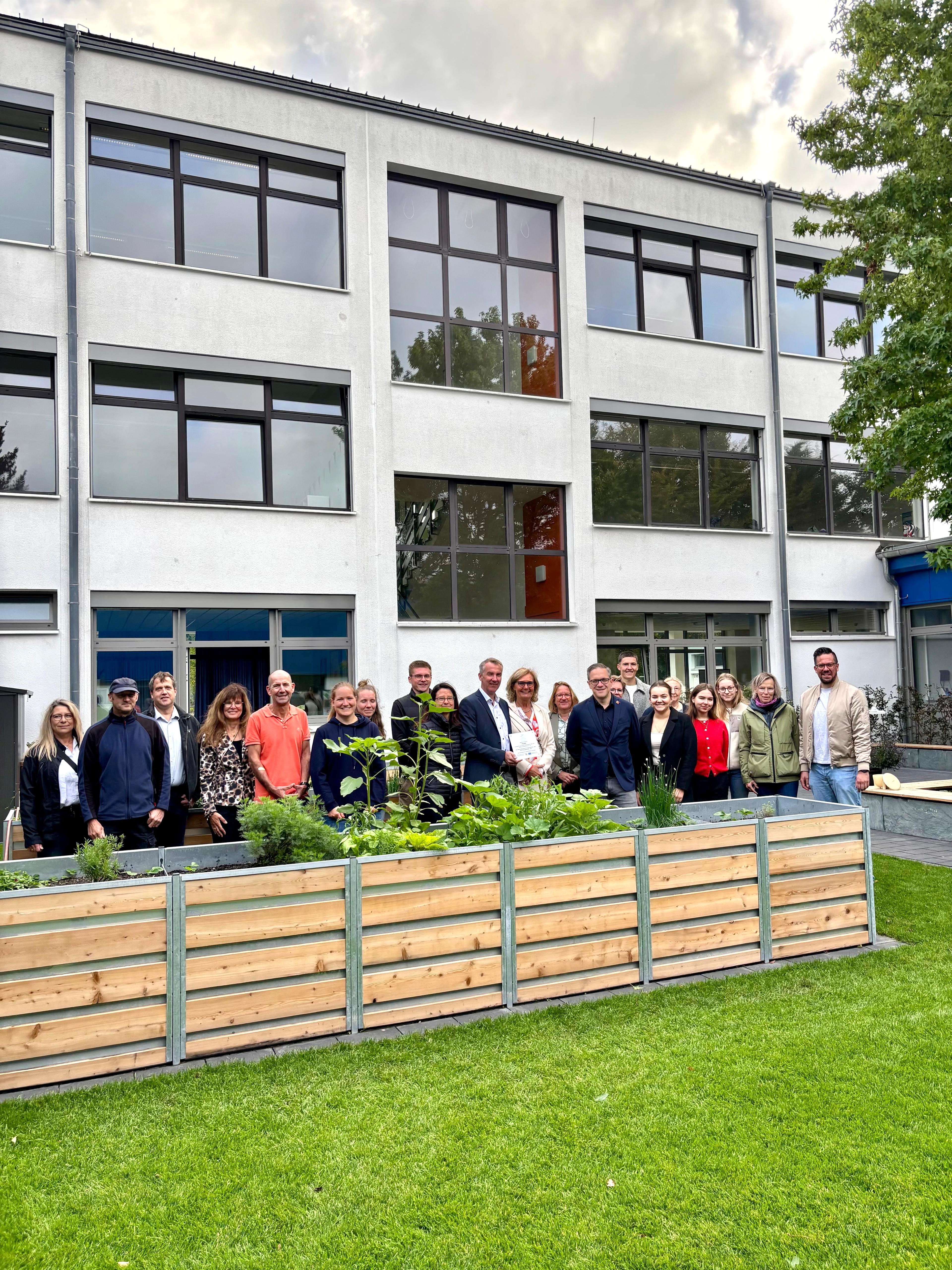 Erwitte: Zusammen mit der Schülerschaft des Gymnasiums wurde im Innenhof der Schule ein nachhaltiger Lehr- und Forschungsgarten angelegt. Die Pflege und die Bepflanzung des Gartens werden Bestandteil des naturwissenschaftlichen Unterrichts sein. Die Anlage beinhaltet u.a. drei Hochbeete, eine Reihe Spalierobst, Komposter und Zierbeete. Zusätzlich werden auf einer neu angelegten Mauer Sitzmöglichkeiten geschaffen.